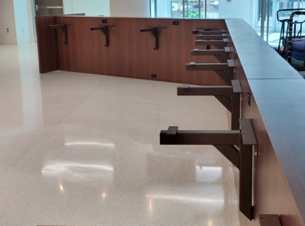 Wall-mounted table base used primarily for booth seating and counters. An excellent solution for ADA compliance and accessibility.