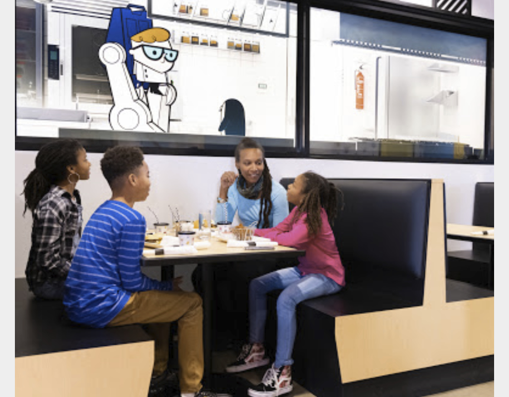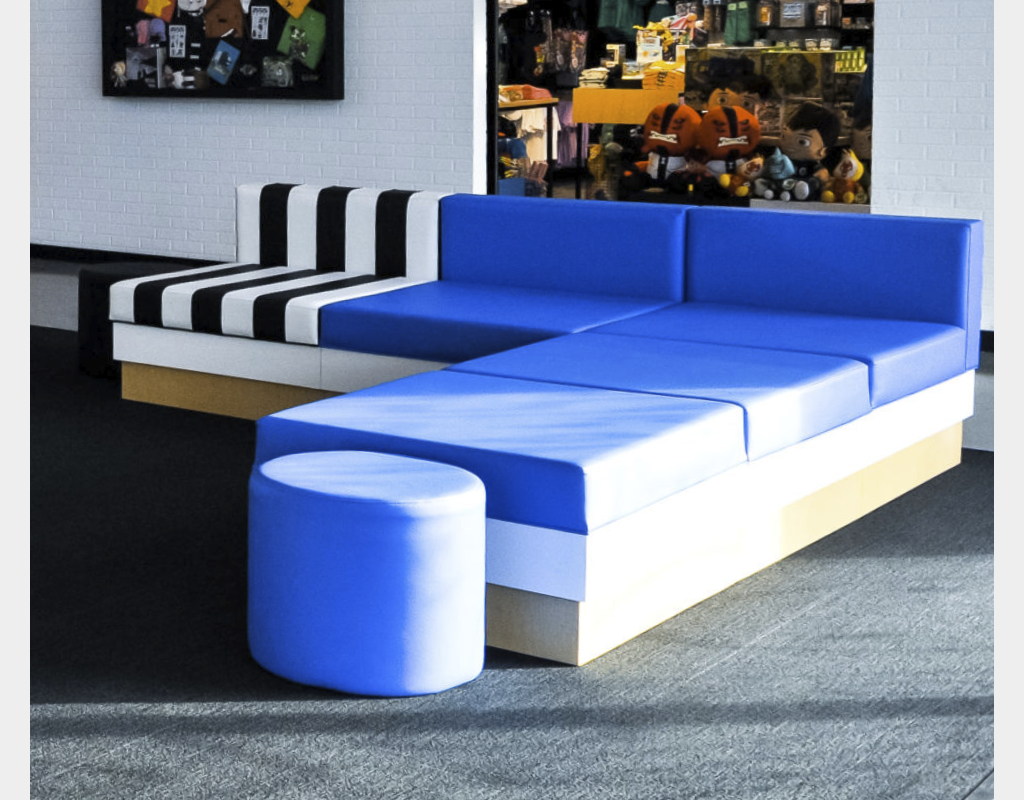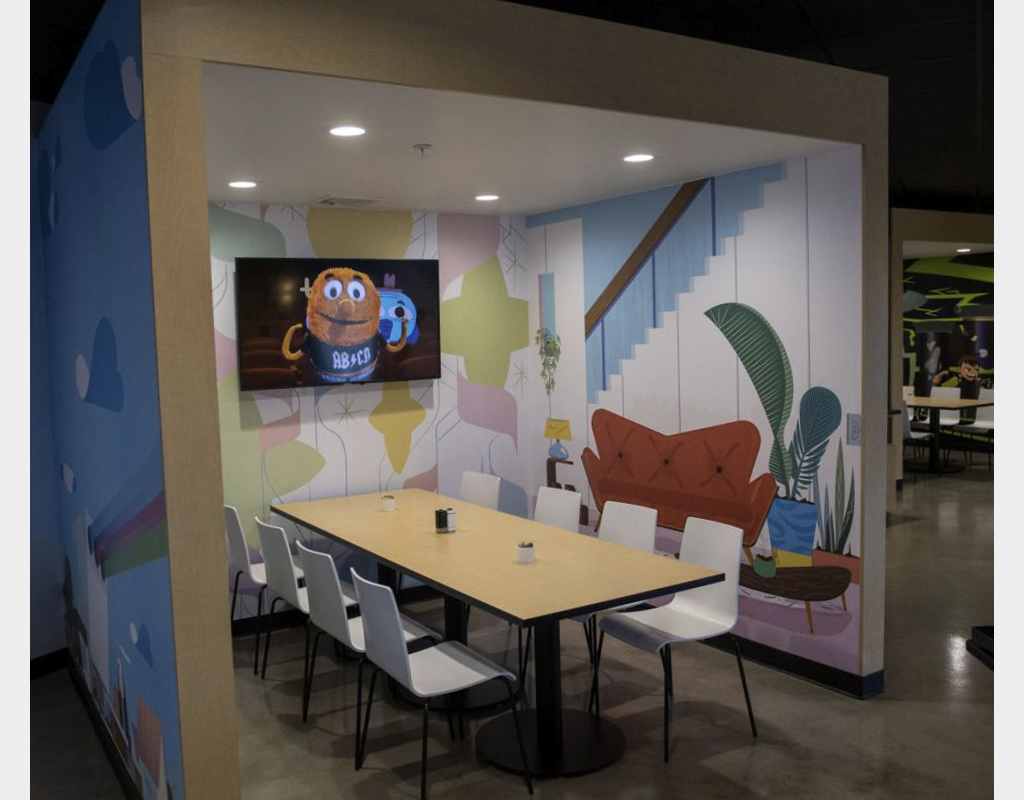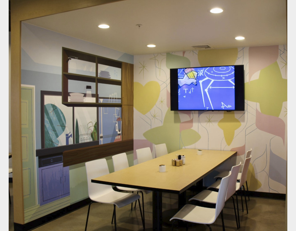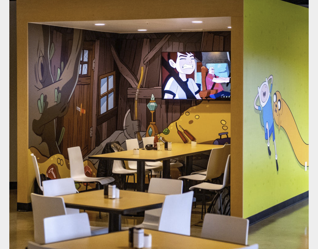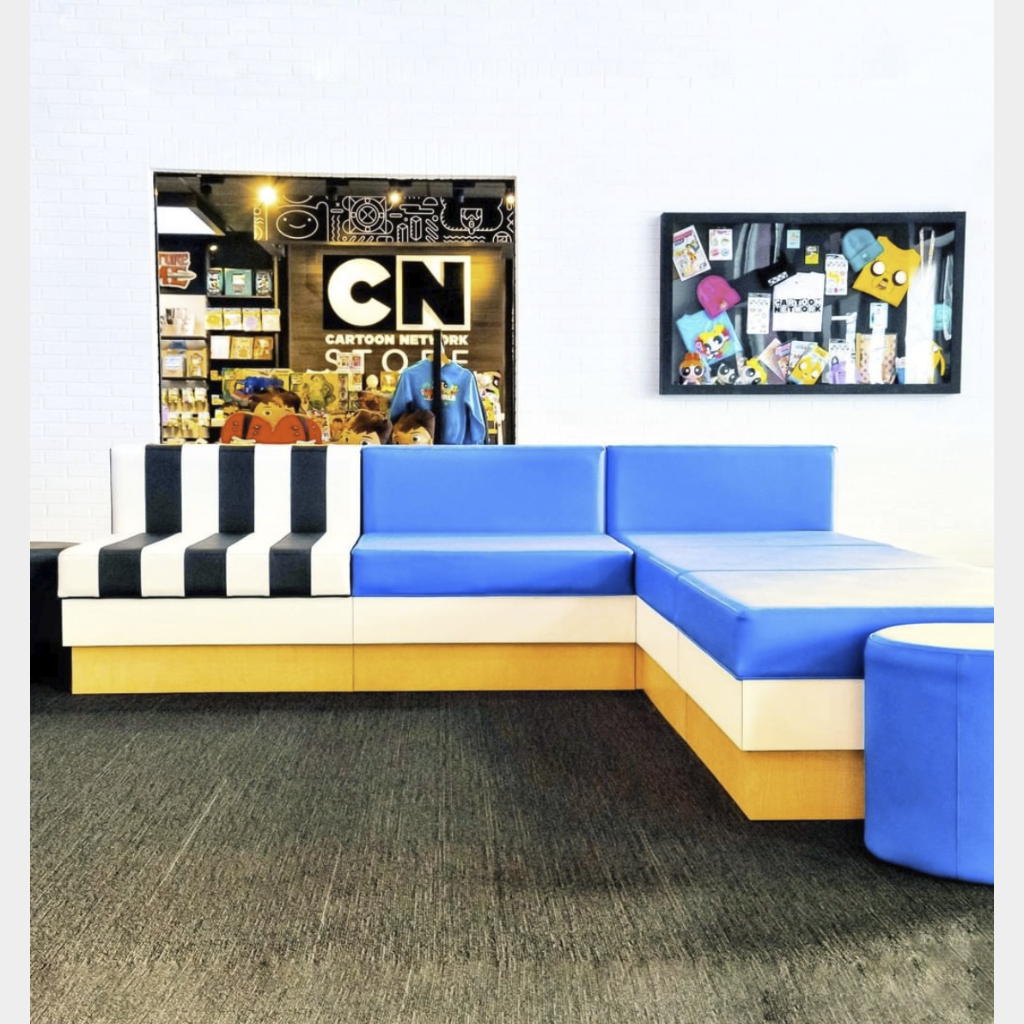 This hotel's entire concept was inspired by the animation and characters from the Cartoon Network roster of popular shows--the first of its kind! We had so much fun with the chic and playful specifications (especially that showstopping custom L-shaped booth in the lobby).
