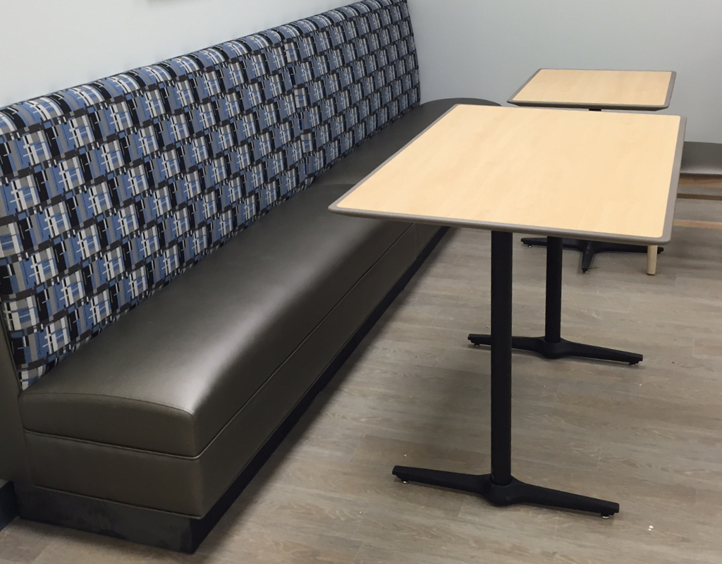 The talented designer carried the Momentum fabric selections throughout the building, from the Manchester seating series to the Venus Booths. Durable NeoCast tops repel moisture and prevent the spread of germs and bacteria with their bonded, seamless urethane edges--perfect for any healthcare environment.