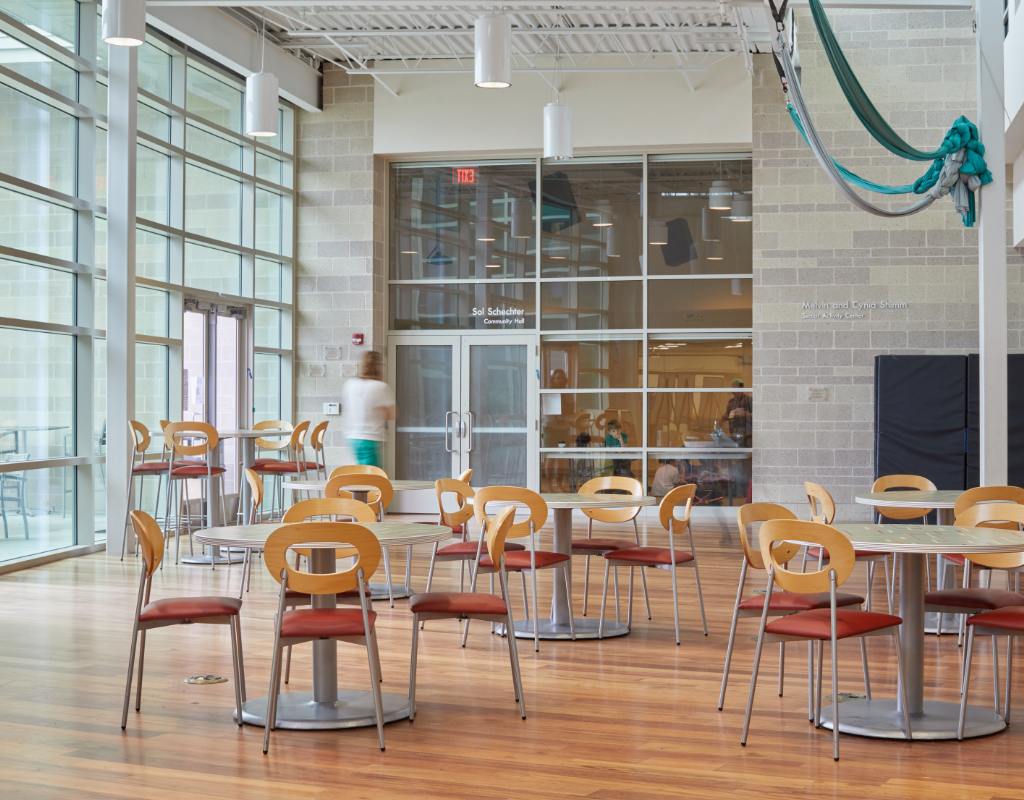 In this cheerful, bright community center space, it's never been more clear that FurnitureLab products are crafted to connect. Members and friends gather here for cultural, recreational, social and educational programs and activities year-round, and our lovely Emily Seating Series and OpenStudio Tables in the Atrium space host it all.
