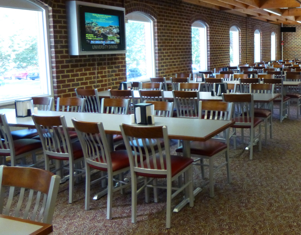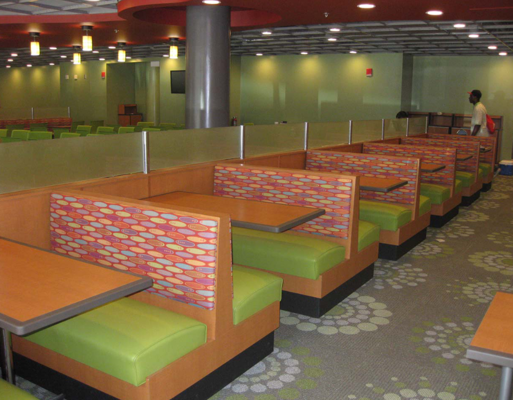 In partnership with an amazing local dealership, FurnitureLab is delighted to say we've worked on 11 different environments on campus since 2004, including cafeterias, dining halls, and other common spaces.