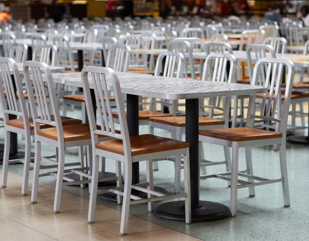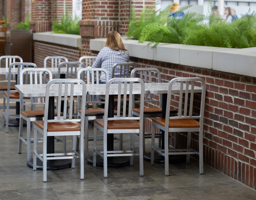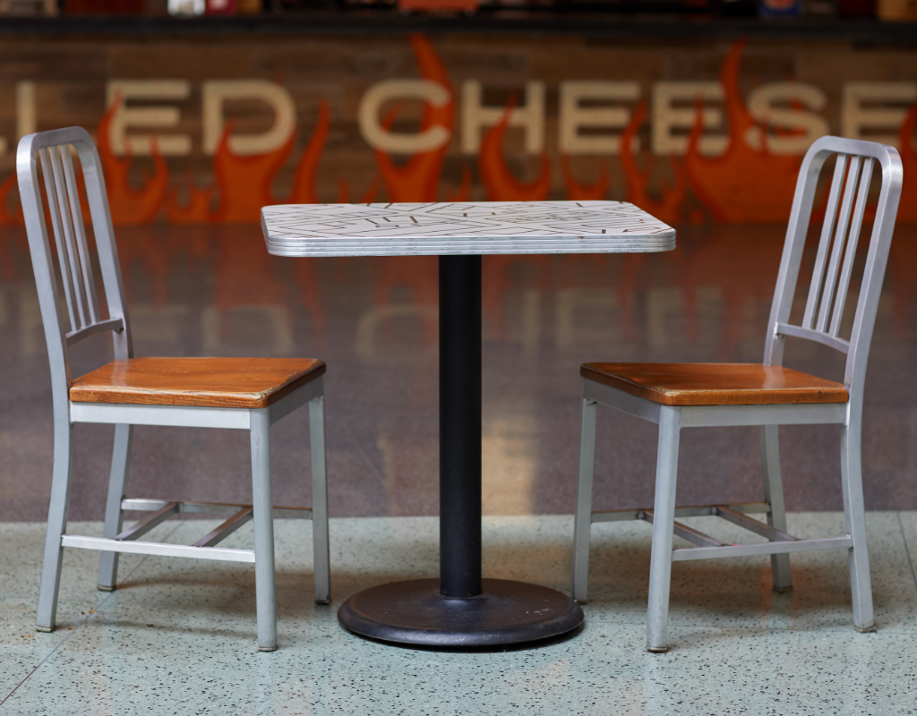 Custom designed tables and timeless chairs.