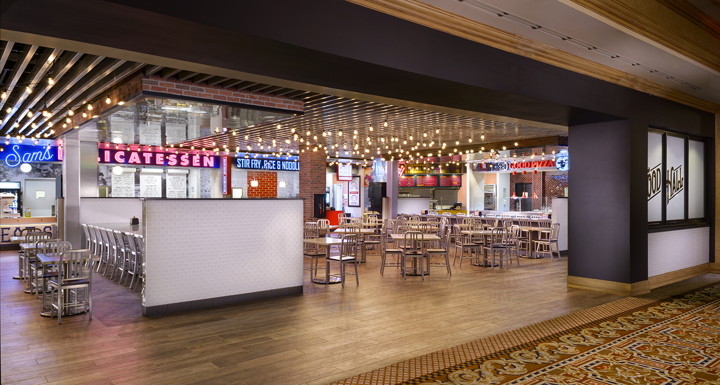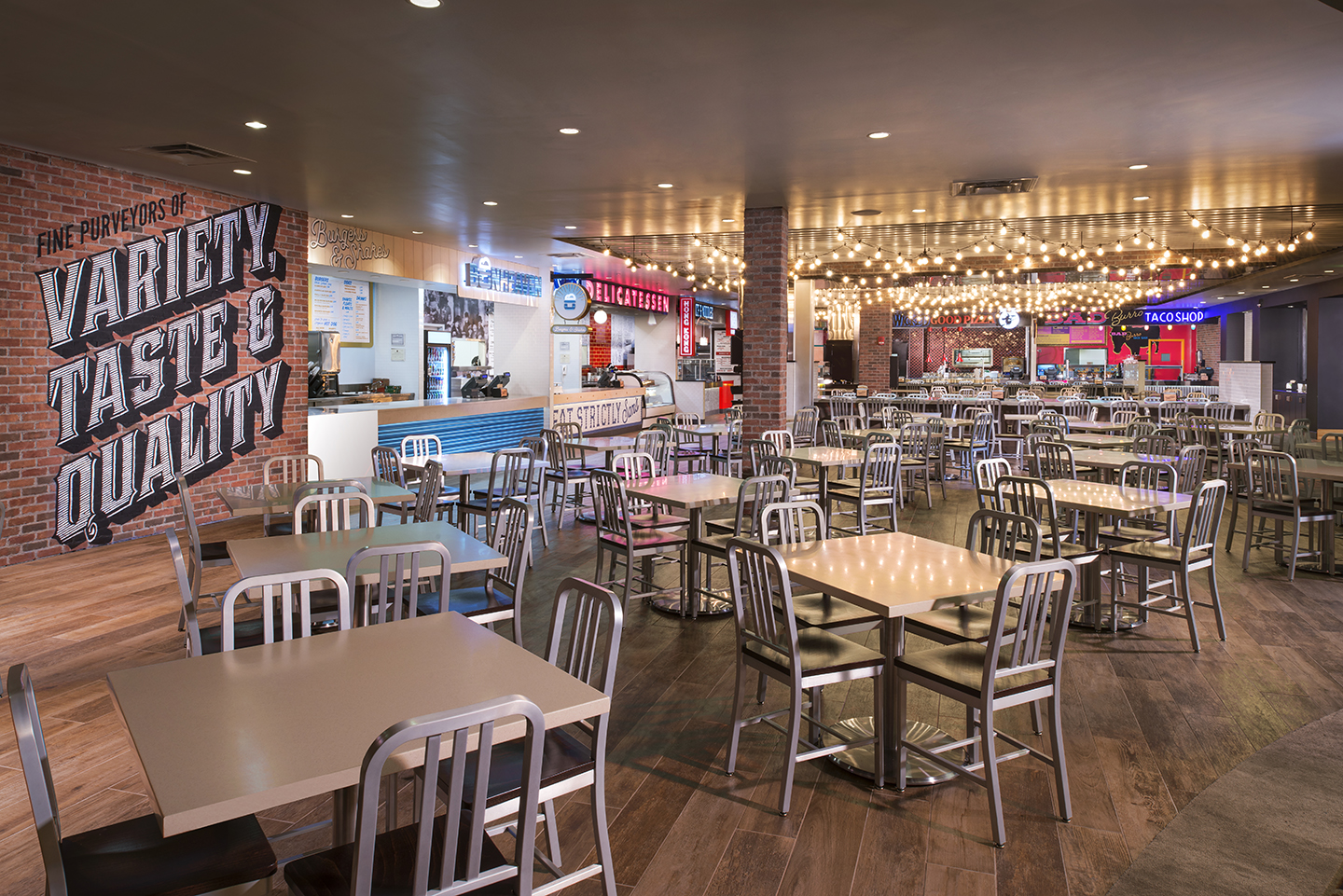 The food hall concept is a fairly new and exciting trend in public dining and gathering spaces--a foodie-centric update on the food court. Turning Stone tempts urbanites to experience 6 unique culinary options in one space, just a few hours north of NYC. Our Deco Chairs are clearly the star of the show.