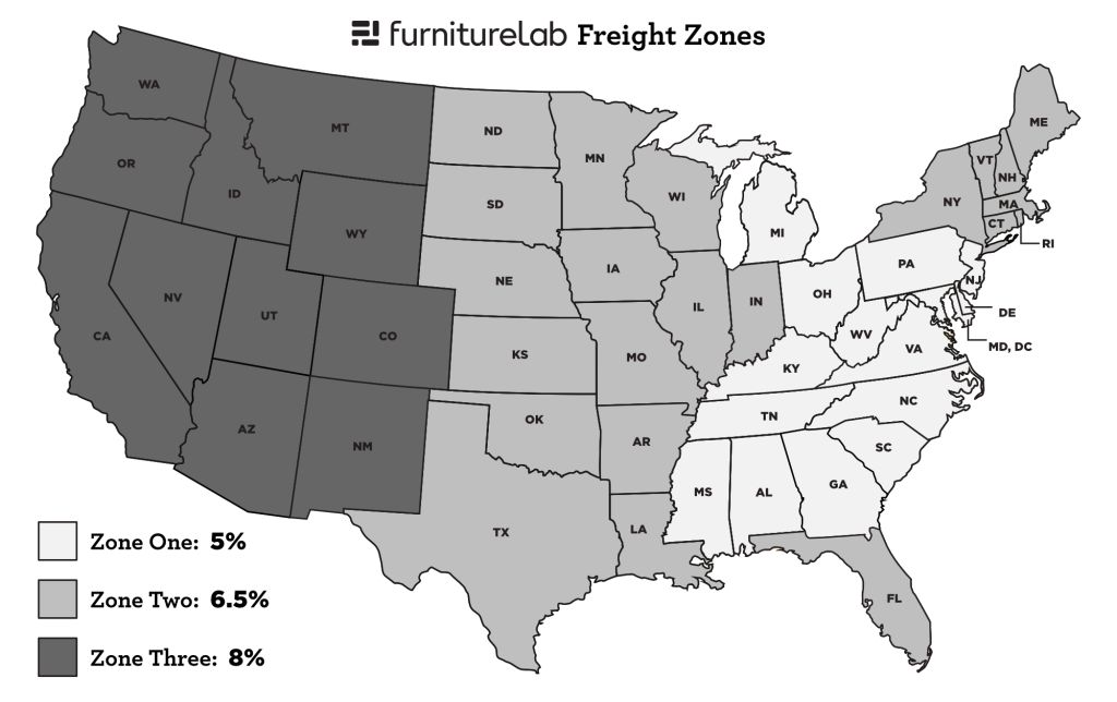To calculate freight, multiply the Total List price for the order by the zone percentage shown below.